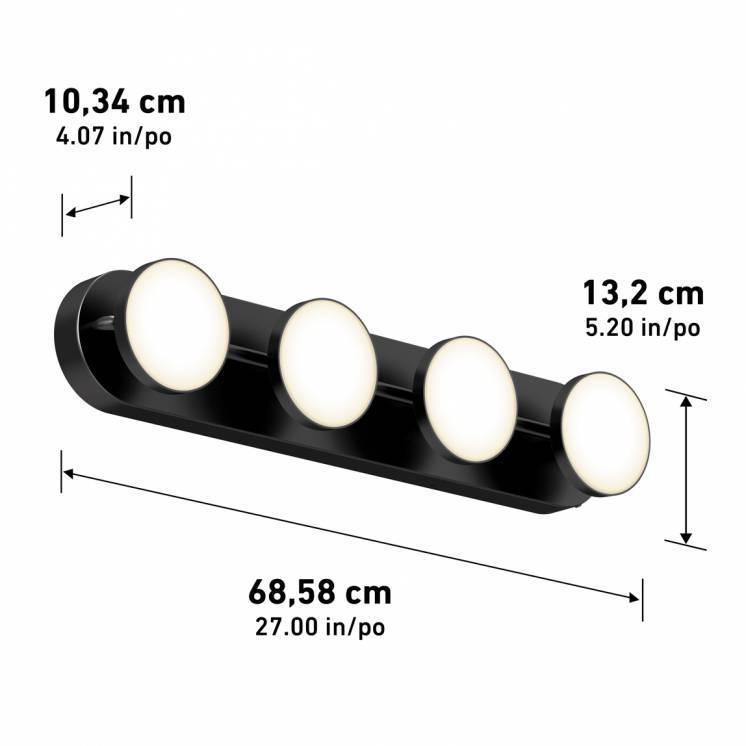 Elevate your bathroom with the ingenious design of this Hollywood-inspired bathroom wall sconce. Combining chic lighting with practicality, it features 4 adjustable spotlights that can be tilted up and down to optimize your beauty routines. The sleek matte black finish adds a contemporary touch to any space.